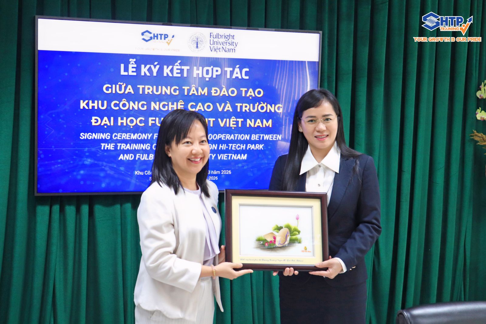 Sáng ngày 18/3/2026, tại Trung tâm Đào tạo Khu Công nghệ cao (SHTP Training), Lễ ký kết Biên bản ghi nhớ thỏa thuận hợp tác (MOU) giữa Trung tâm Đào tạo Khu Công nghệ cao và Trường Đại học Fulbright Việt Nam đã chính thức diễn ra, đánh dấu bước phát triển mới trong việc tăng cường kết nối giữa cơ sở đào tạo và hệ sinh thái doanh nghiệp công nghệ cao.