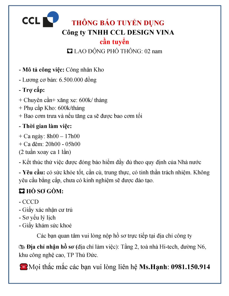 - Tuyển nhiều vị trí việc làm
