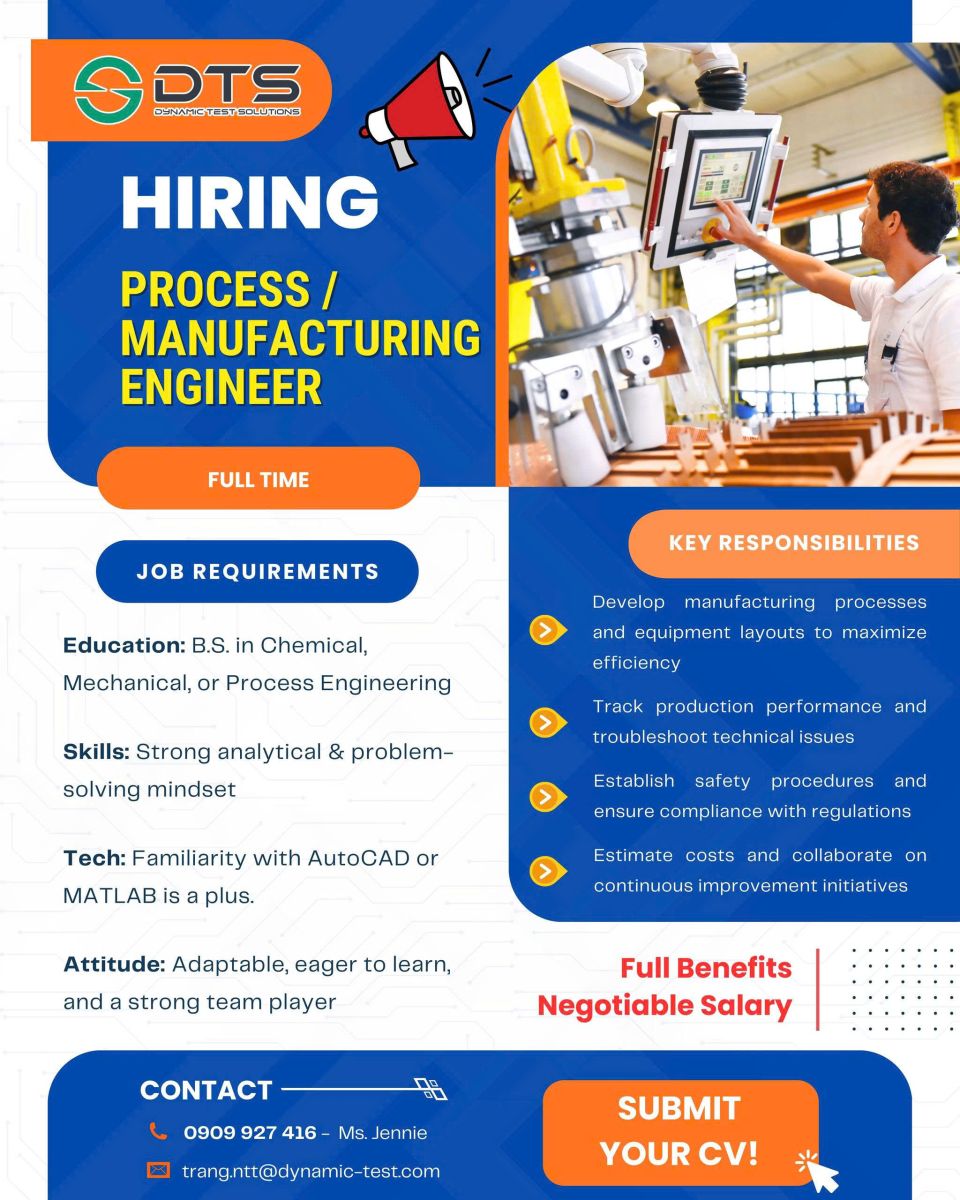 - Tuyển gấp Process Engineer và Machinist