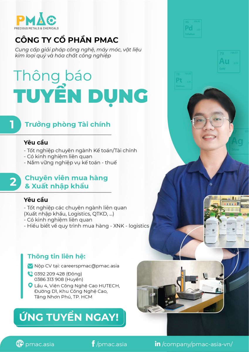 TUYỂN DỤNG PMAC 2026 – CƠ HỘI PHÁT TRIỂN TRONG LĨNH VỰC CÔNG NGHỆ CAO – KIM LOẠI QUÝ – VẬT LIỆU & THIẾT BỊ CÔNG NGHIỆP