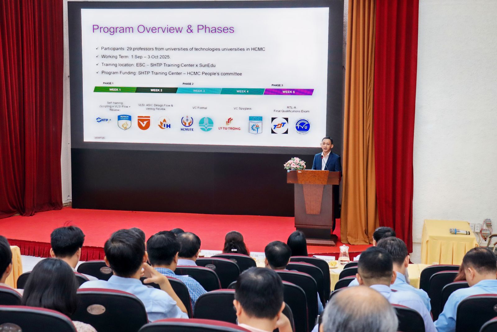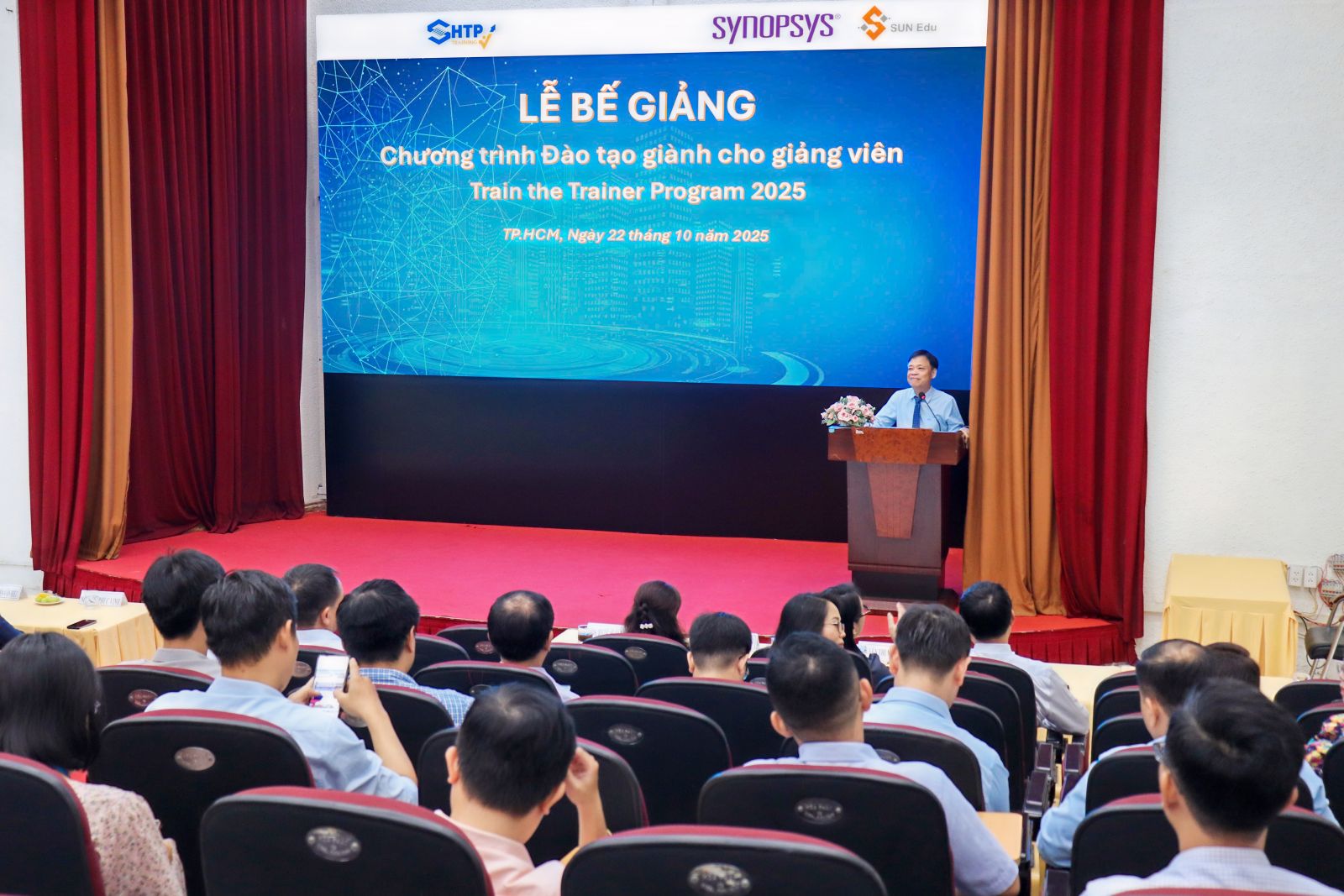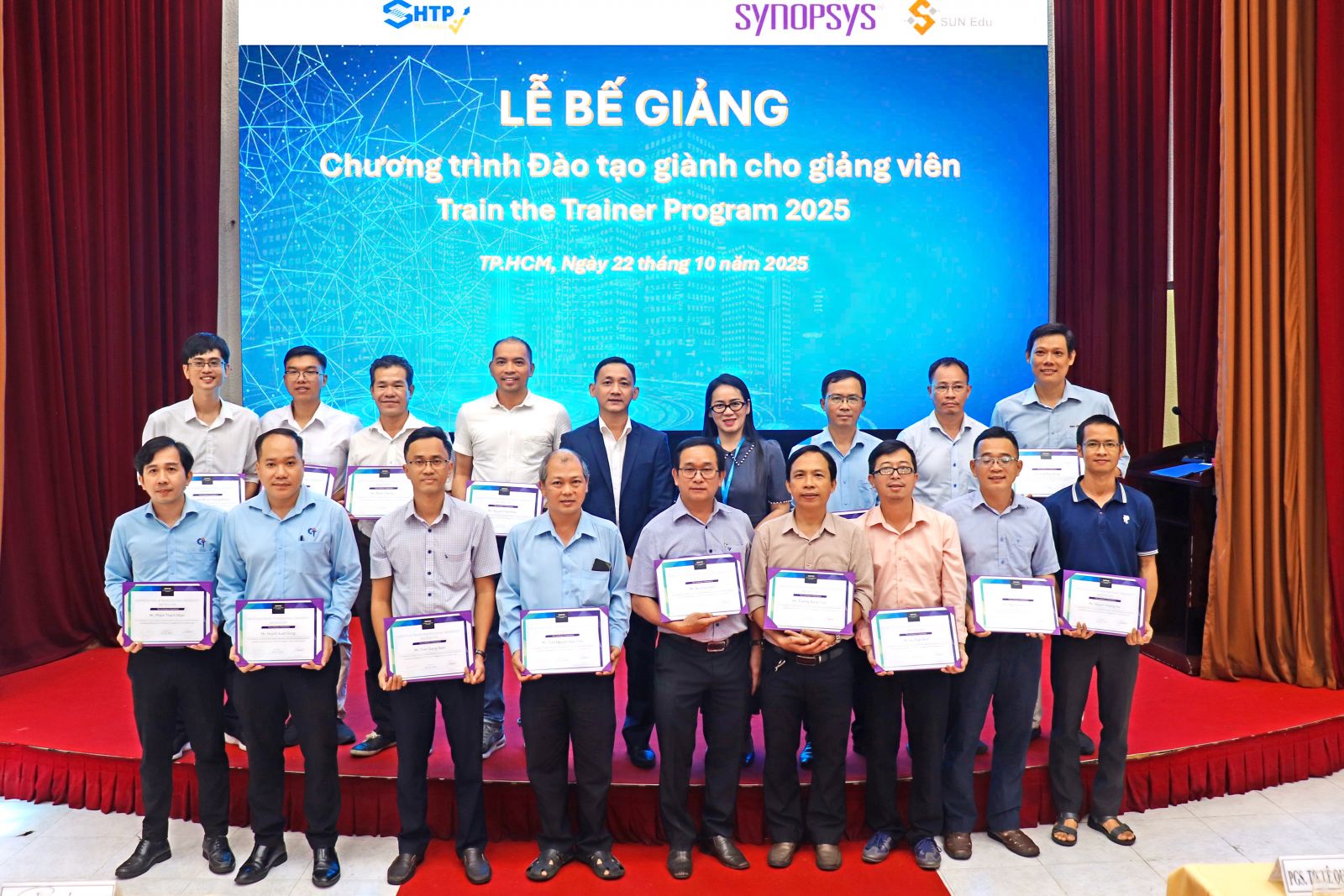 Sáng ngày 22/10/2025, tại Hội trường Trung tâm Đào tạo Khu Công nghệ cao TP. Hồ Chí Minh đã diễn ra Lễ bế giảng “Chương trình Train the Trainer (ToT) 2025 - PROCESS FROM FRONT END DESIGN (RTL DESIGN) TO VERIFICATION” - khóa đào tạo chuyên sâu dành cho giảng viên các trường đại học, cao đẳng, viện nghiên cứu trong lĩnh vực thiết kế vi mạch.