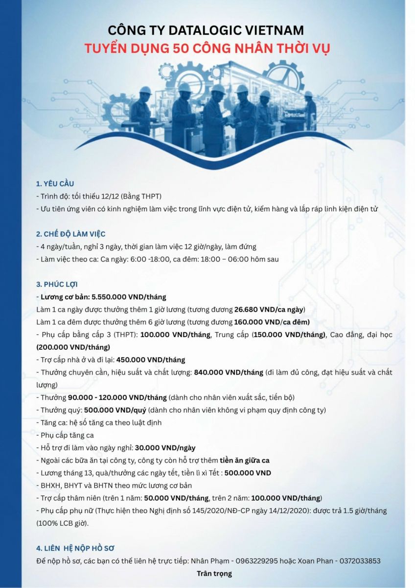 - Tuyển dụng Kỹ thuật viên vận hành máy, Bảo trì Khuôn, Trưởng bộ phận ép nhựa