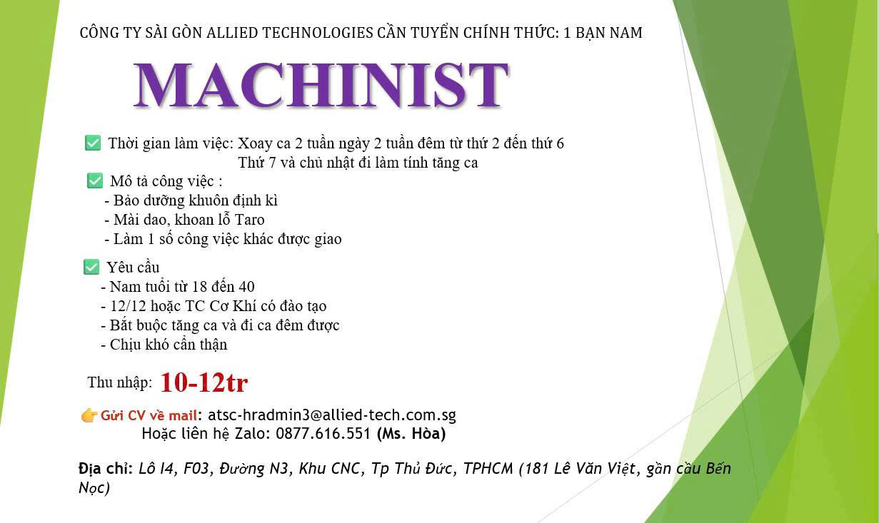 - Tuyển Tổ trưởng bộ phận Quản lí dụng cụ đo