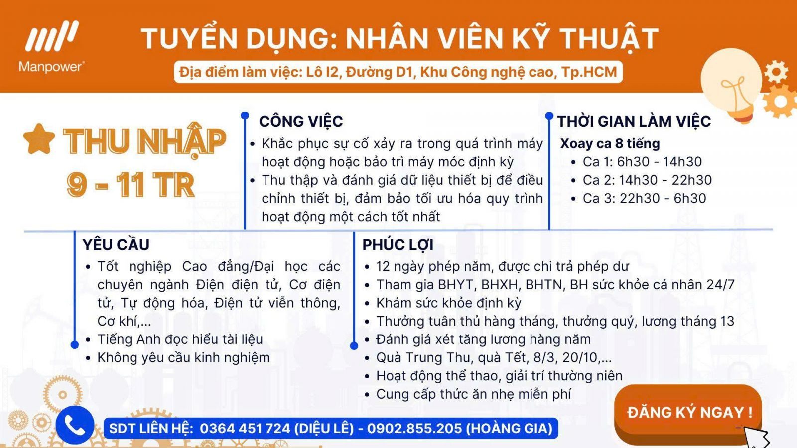 - Tuyển dụng Kỹ thuật viên vận hành máy, Bảo trì Khuôn, Trưởng bộ phận ép nhựa